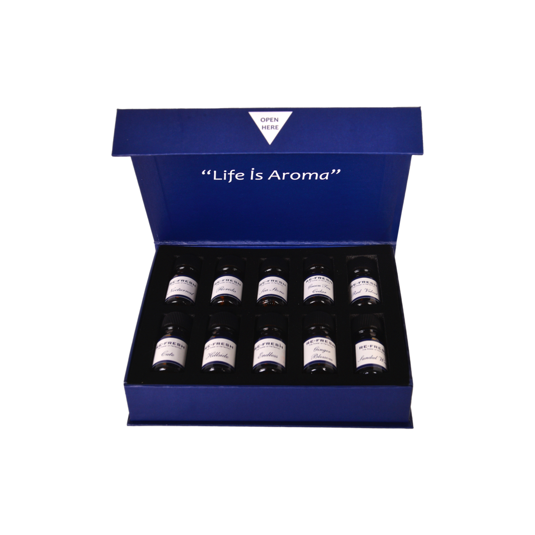 Nocturnal, Florida, Sea Stone, Green Tea Cedar, Red Velvet, Cute, Hillside, Endless, Ginger Blossom ve Sandal Wood kokularından oluşan 10 adet ve her biri 5 ml./0.15 fl oz. olarak şişelenmiş özel seri.